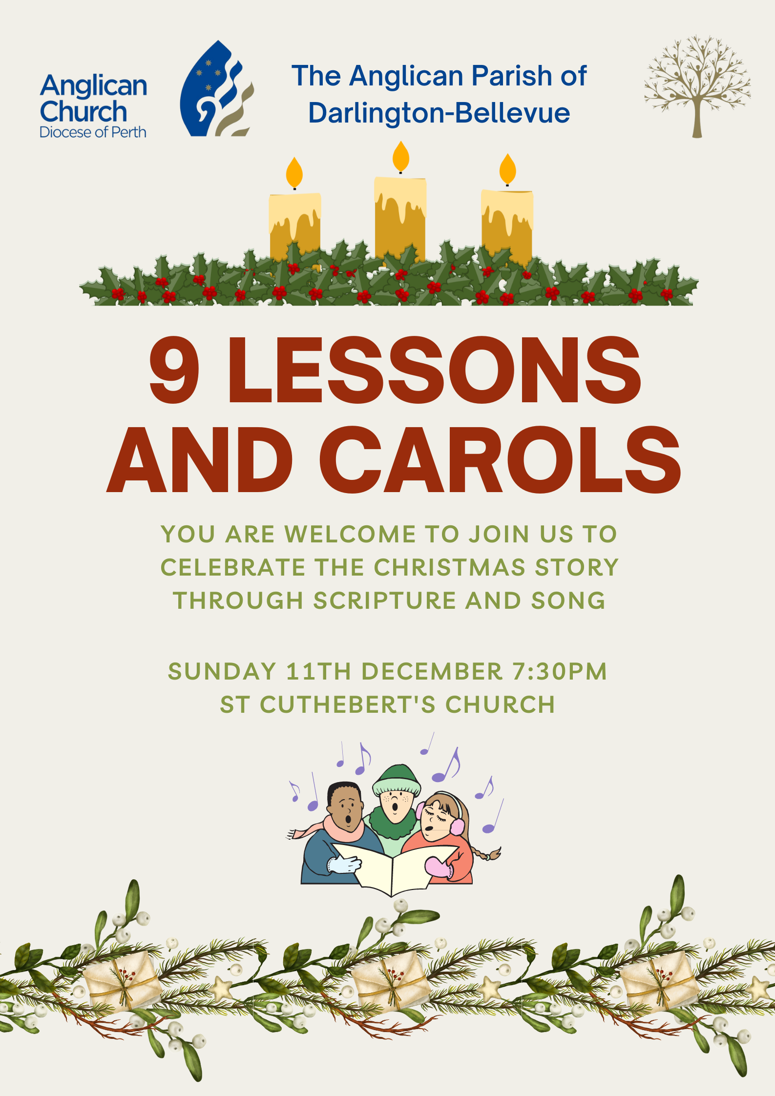 9 Lessons and Carols Sunday, December 11, 2022 7:30 PM 9:30 PM 19:30 21:30 Google Calendar ICS Please join us to celebrate Christmas through scripture and song - All Welcome