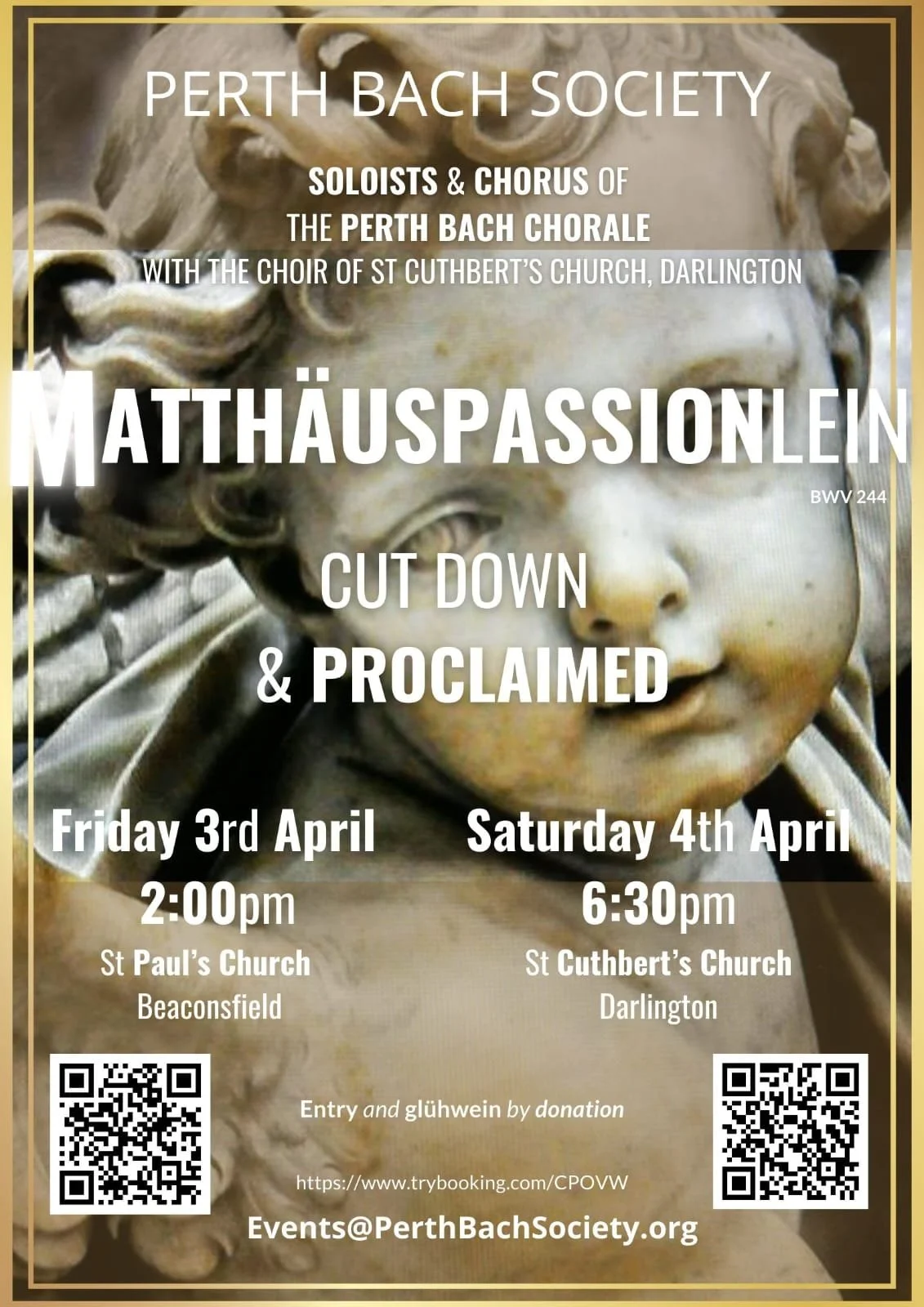 Holy Saturday, 4 April 6.30pm. Donations encouraged.